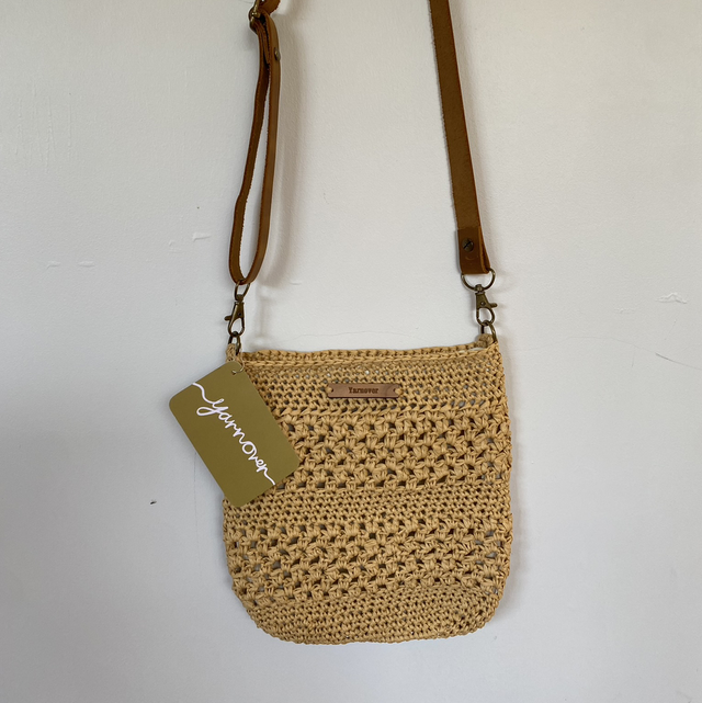 This versatile cross body bag is a Yarnover best seller! It can be made in 100% cotton yarn in a huge variety of colours or in raffia. It is fully lined with a zip fastening and either a leather or vegan leather adjustable strap.