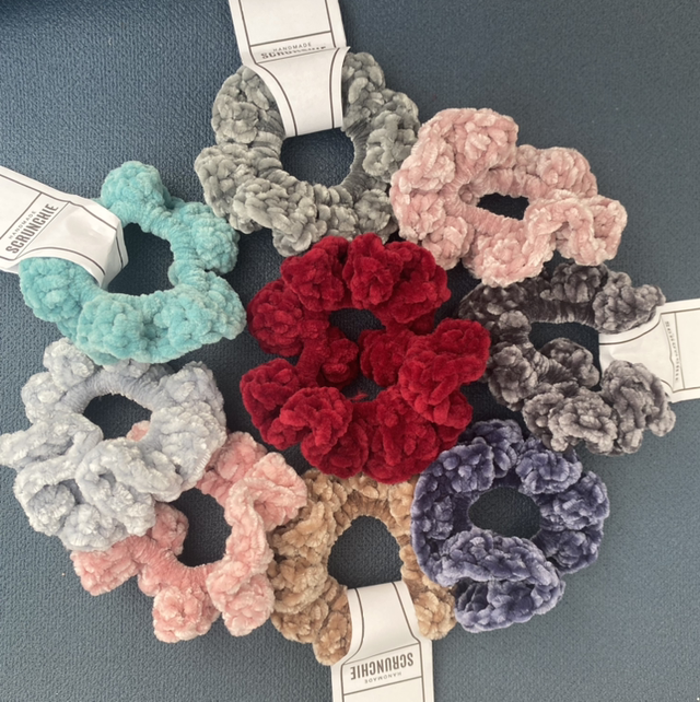 Made with velvet yarn in a variety of colours to match your outfit.
